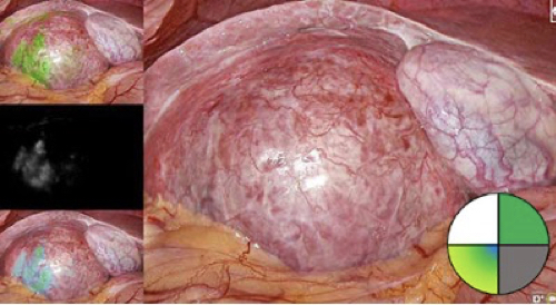 White Light, Fluorescence Green, ISO Fluorescence and NIR black-white displayed at same time with option to toggle on main display